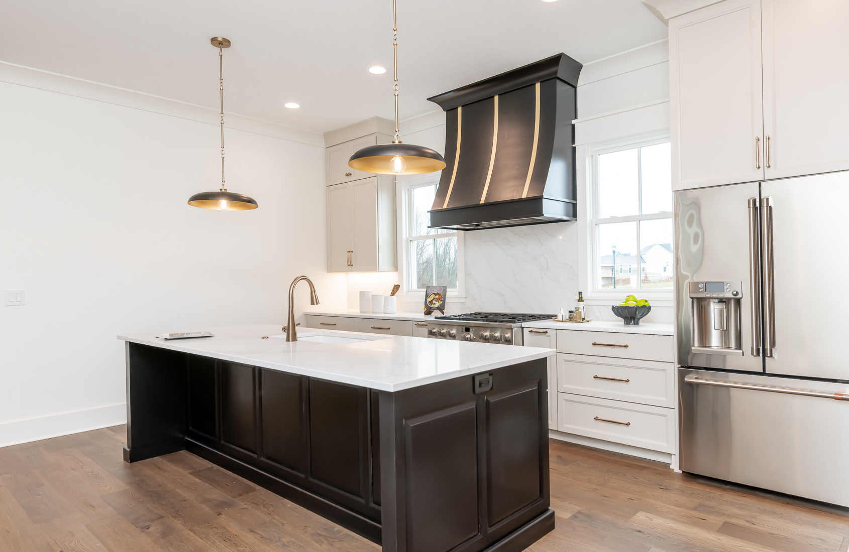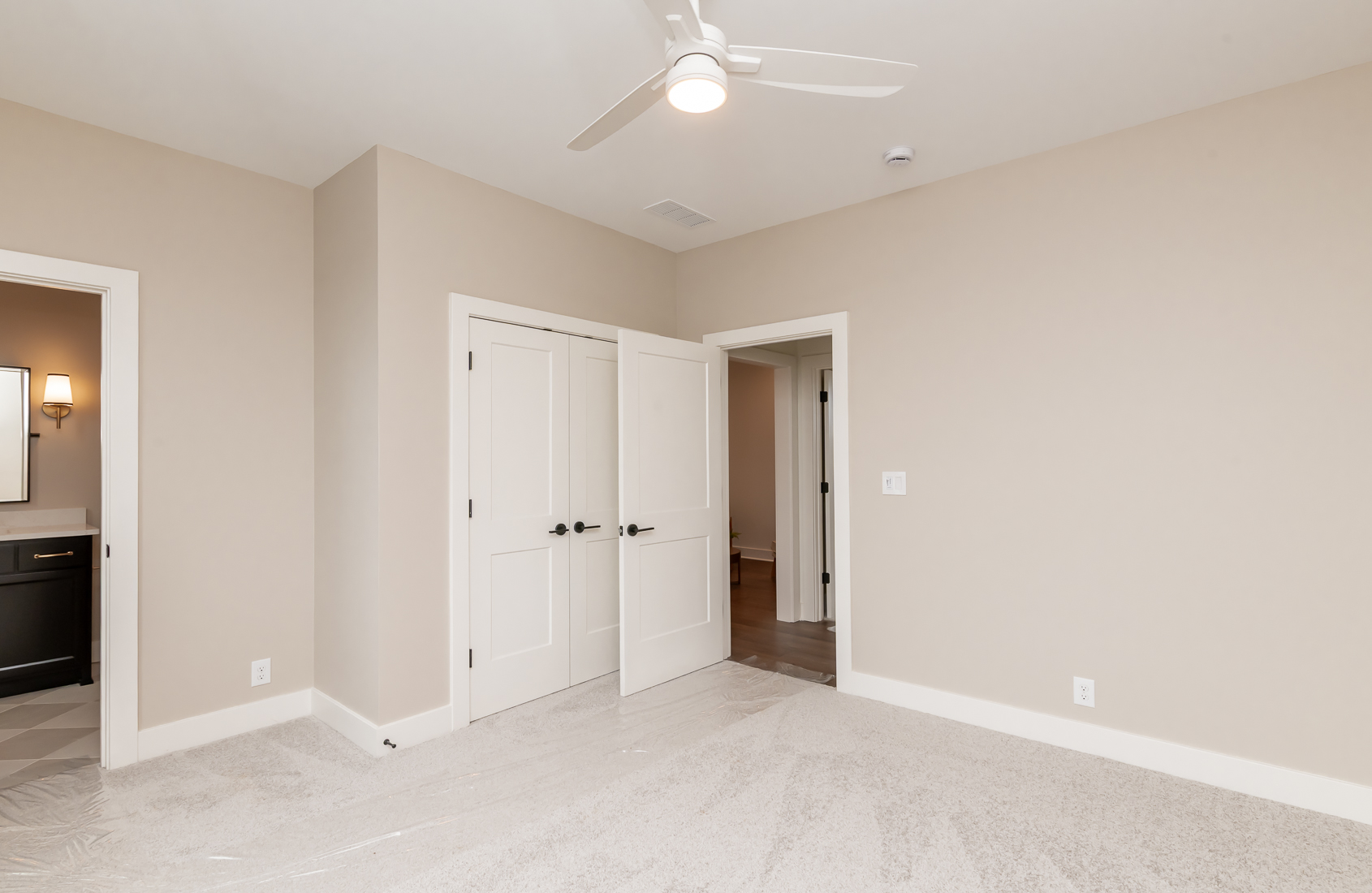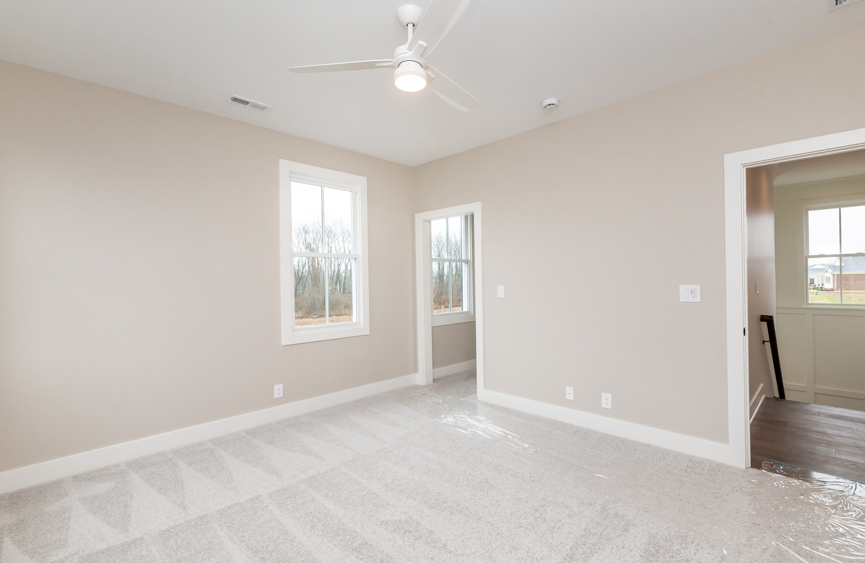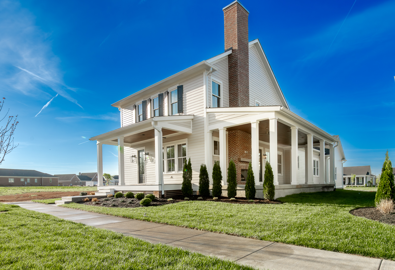 A magnificent first floor primary home in our Oldham County section, The Hamlet. The front porch welcomes you into this open plan with a huge living room/dining room which is open to the kitchen and leads you to the outside living porch. A convenient office is just off to the side. The primary suite has a luxurious bath with an oversized shower, closet and dual vanities. The laundry room and mudroom are at the rear entry just off the three car attached garage. The second floor boasts 3 additional bedrooms, 2 full baths and a cozy loft area. The basement is ready for finishing with an egress window and full bath rough-in. This home will be ready January 2026.