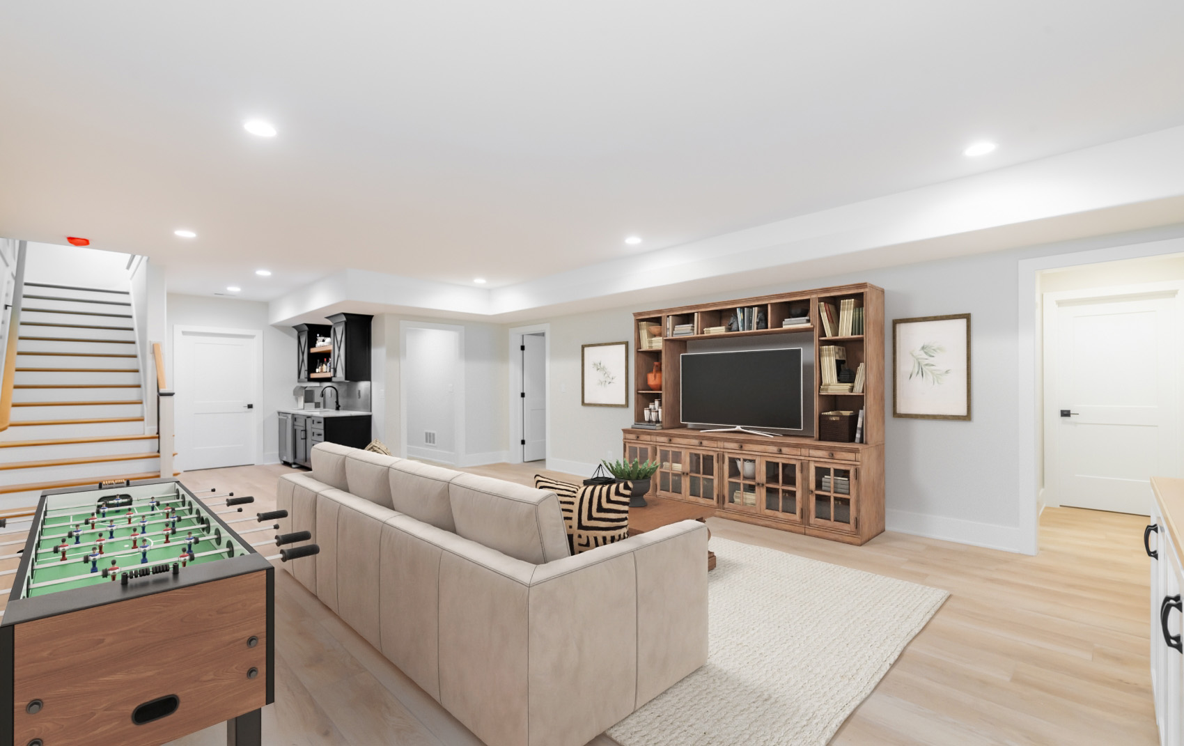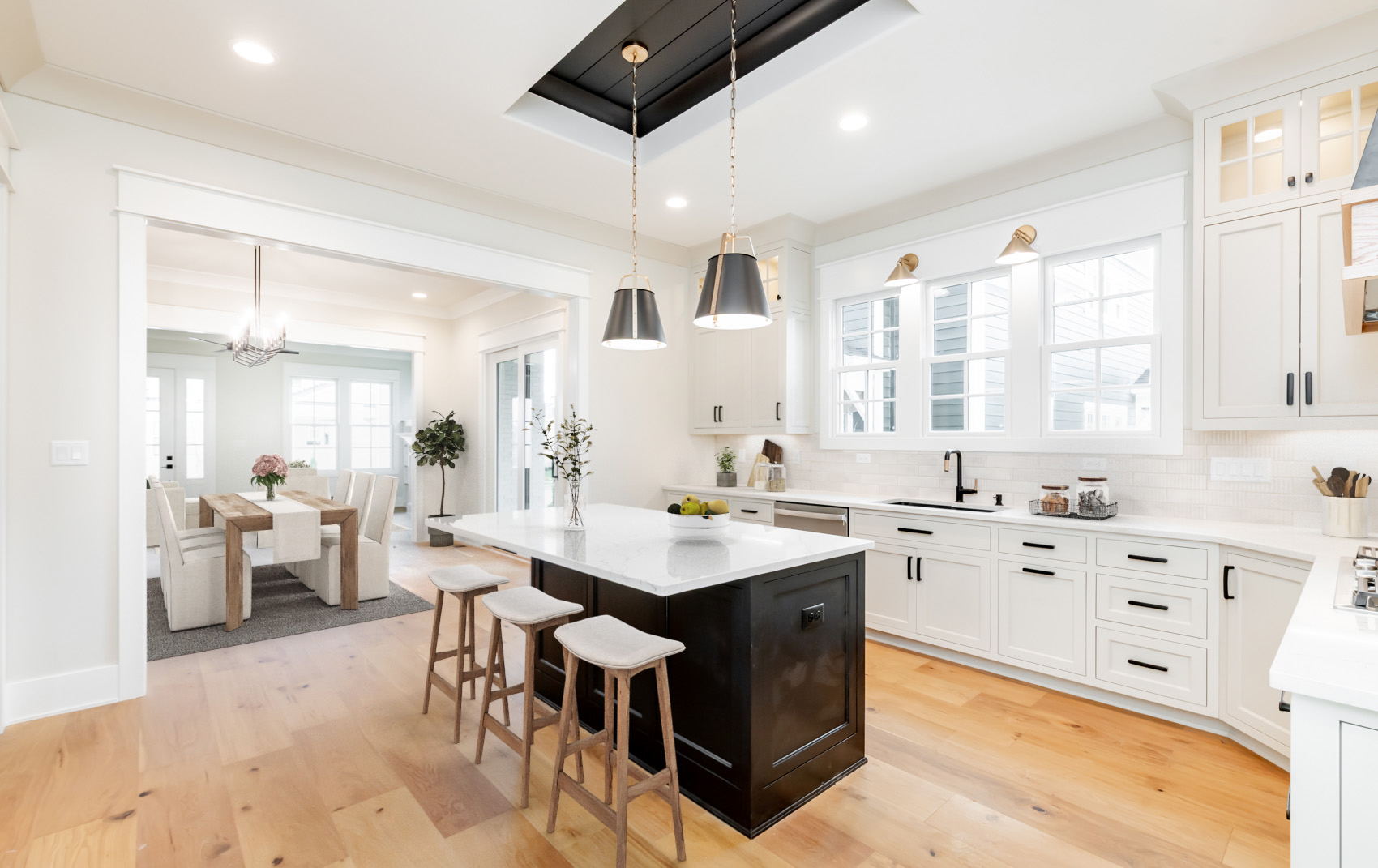 An incredible one story plan with a finished basement in our thriving north village. The front porch welcomes you into this home that features attention to detail and amazing finishes. 10 foot ceilings, custom trim work and cabinetry, a huge pantry, laundry room and mud room. The living room, dining area, kitchen and hearth room flow together and lead you out to the side porch. The primary bedroom has a luxurious bath and oversized walk in closet. There is a 2nd bedroom on the first floor with a full bath. The three car attached garage is off the cubbie/mud room area. The basement is finished with 2 additional bedrooms a full bath and a family room with a bar but still plenty of storage space. Norton Commons, More Life Per Square Foot!